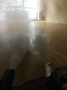 Обробка приміщення за американською технологією «Сухий туман» за допомогою апарату BURGESS THERMO-FOGGER на основі рідин OdorX Thermo 55 та Harvard Odor Destroyers.
