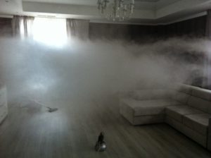 2. Обробка приміщення за технологією «Сухий туман» за допомогою апарату Thermo-Fogger (загальна назва подібного обладнання – фоггери) дезодораційно-ароматизуюча рідина перетворюється на «сухий туман» (аналог природного диму).